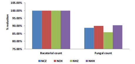 圖1:細(xì)菌和真菌計(jì)數(shù)的減少百分比。