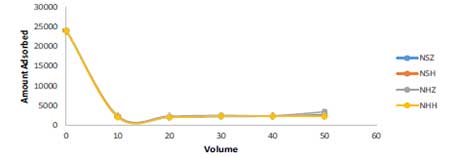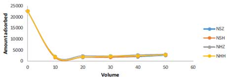 通過改變通過柱子并與活性炭接觸的廢水的量來實(shí)現(xiàn)廢水的體積對(duì)每種測(cè)試活性炭的吸附能力的影響。四種原材料做成的活性炭對(duì)微生物參數(shù)的吸附趨勢(shì)相似。吸附細(xì)菌和真菌的最有效的初始體積是10cm3。在初始體積為10cm 3時(shí),活性炭有效地吸附廢水中的高細(xì)菌和真菌負(fù)荷,此后吸附量幾乎保持恒定,如圖4和5所示。