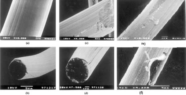 改性電極是電化學(xué)分析中應(yīng)用最有意義的工具?;钚蕴坷w維是制備修飾電極的容易獲得和有用的材料。纖維促進(jìn)小體積溶液的工作,同時保持大的電極表面積1。在對在活性炭纖維上電鍍貴金屬制備的活性炭纖維電極進(jìn)行了研究?;钚蕴坷w維纏繞在鈦網(wǎng)上。通常34 使用一厘米長的纖維束(每束約6000根纖維)以確保鈦網(wǎng)的均勻覆蓋。纏繞在紗布上后,將這些纖維的末端合并在一起,然后擰緊在電極的桿上。然后用小的鈦夾將這些纖維固定在桿上。電極用丙酮清洗除去油脂化合物,在電鍍之前和之后稱重。已經(jīng)顯示在活性炭纖維的表面上沉積銀,金或銅的金屬膜能夠提高碳中Li嵌入/脫嵌反應(yīng)的CV峰高度,這意味著反應(yīng)速率提高。CV的陽極峰的峰高隨著厚度的變化而變化。黃金和銅是最薄的電影最高峰,而銀則表現(xiàn)出復(fù)雜的行為,其中必須考慮取決于膜厚度的晶體取向變化的貢獻(xiàn)。增強(qiáng)效應(yīng)基于兩個因素闡明,即電導(dǎo)率增加和在銀膜表面上形成合適的固體電解質(zhì)界面。在圖1中,圖示了用真空沉積的銅,金和銀膜覆蓋的活性炭纖維的SEM圖像。該圖顯示活性炭表面似乎完全被緊密的金屬膜覆蓋。
