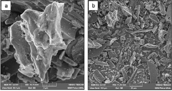 圖1:從渲染過程中產(chǎn)生的副產(chǎn)品獲得的活性炭顯微照片。(a)1000x。(b)100X。